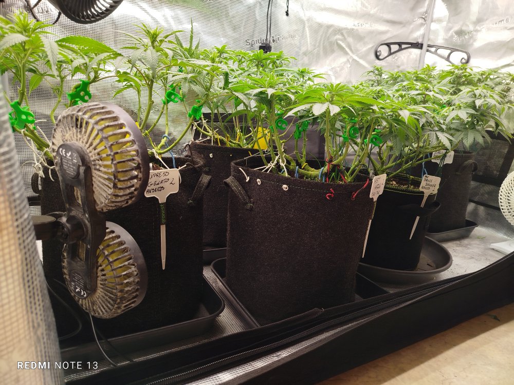 I w końcu nadeszła wiekopomna chwila i zrobiłem lst bannerą 😉💪 lekko je rozłożyłem w około donicy i zrobiłem delikatną defoliacje💪. Na koniec dostały pożywkę na szybszą odbudowę i teraz odczekam ze dwa dni i zobaczę czy nie będzie trzeba czegoś poprawić. Bo ogólnie czekamy do piątku albo może być że do niedzieli ze ścinką dlatego że SundeaDriver jeszcze coś świruje i dalej puchnie. A z resztą ona ma czas kwitnienia od 10-11 tygodni a w piątek będzie ostatni dzień 10go tygodnia więc ma prawo jeszcze lekko puchnąć. I to samo dzieje się ze Skywalkerem ale te zioło tak kopie że ja nie chcę bursztynu bo później nie idzie normalnie funkcjonować bo faza jest ciężka, typowo kanapowa😉🤣🤣